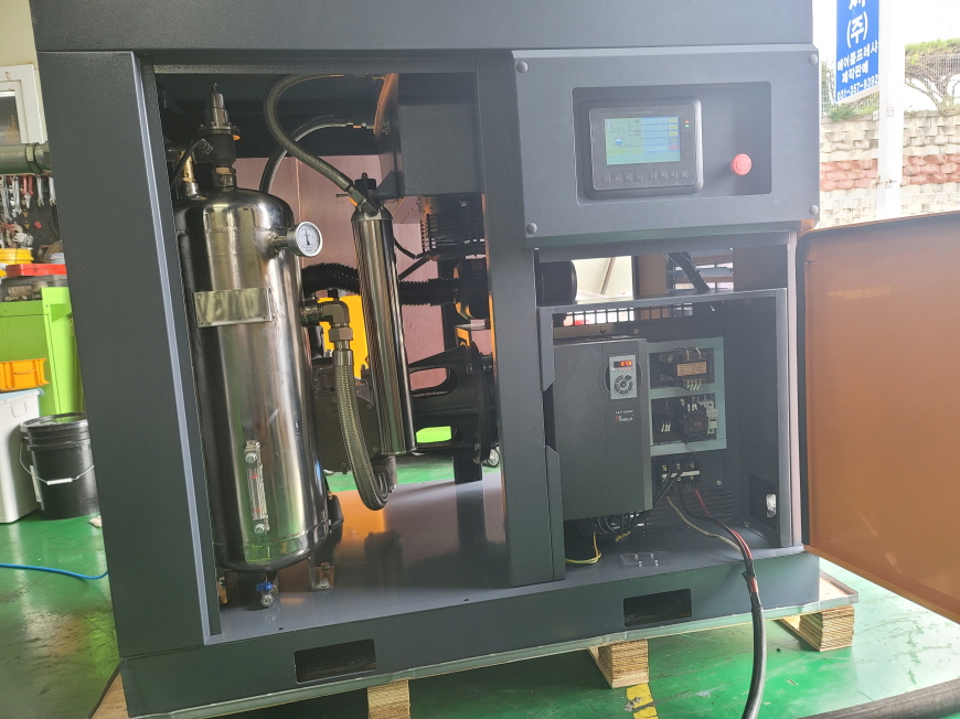 오일프리인버터스크류콤프레샤(30~350마력) *오일프리 인버터스크류콤프레샤 1.품목 : 30~350마력 2.높은 정숙성,잔고장이없는 견고한 성능 3.합리적인 가격 4.물 순환으로 청정에어 및 열 발생 방지의 탁월함 5. 공냉식으로 설치의 간편함 6.높은 에어생산괴 인버터방식으로 탁월한 에너지절감 7.중소기업,중견기업,대기업 납품으로 탁월한 제품 인증 가격협의 구매상담 제품설명 특장점